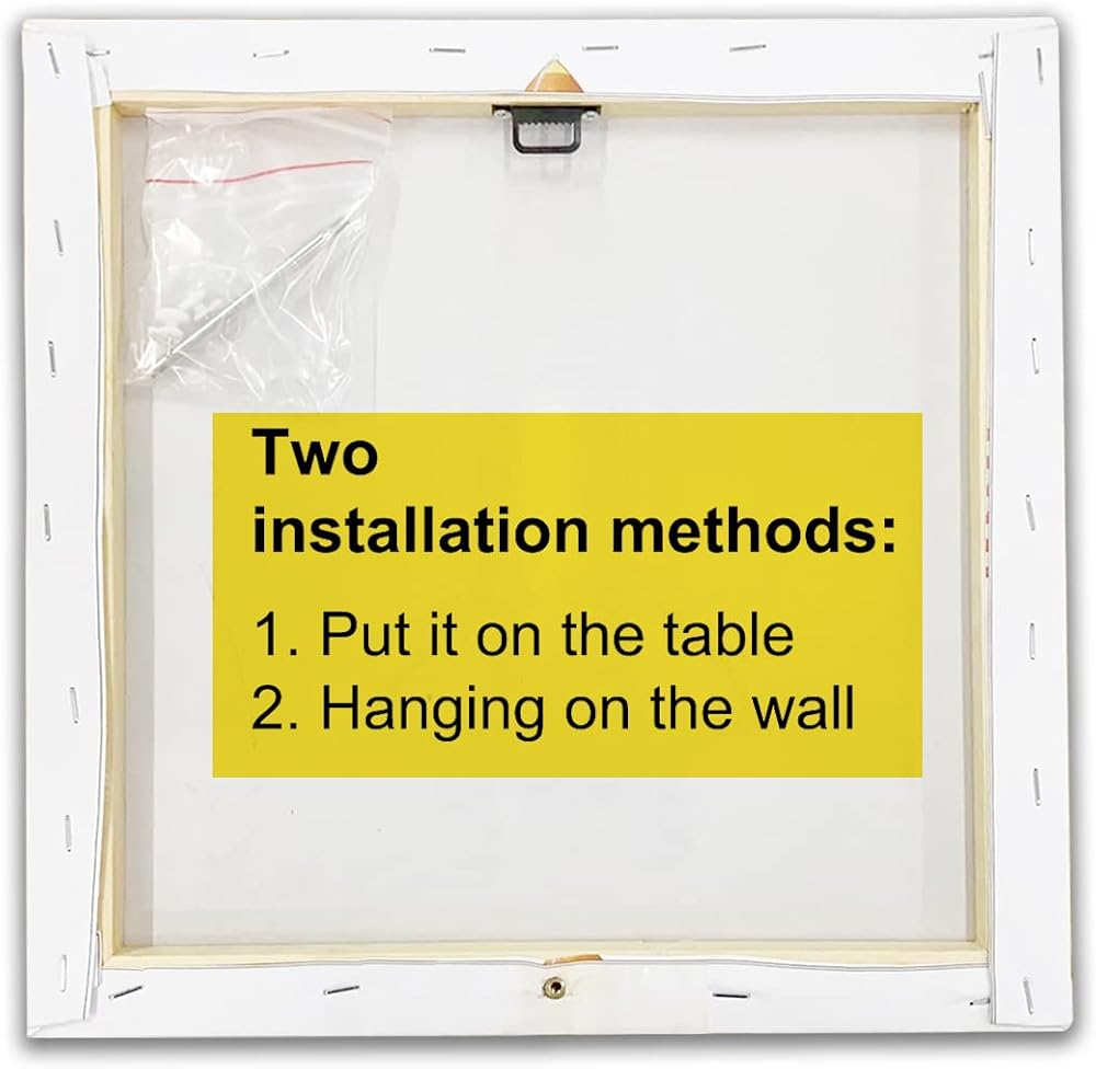Simple & Effective: This decorative canvas print can stand on a flat surface such as a table, shelf, etc. simply by placing it. Can also be hung on the wall. This is a simple yet effective way to decorate.
