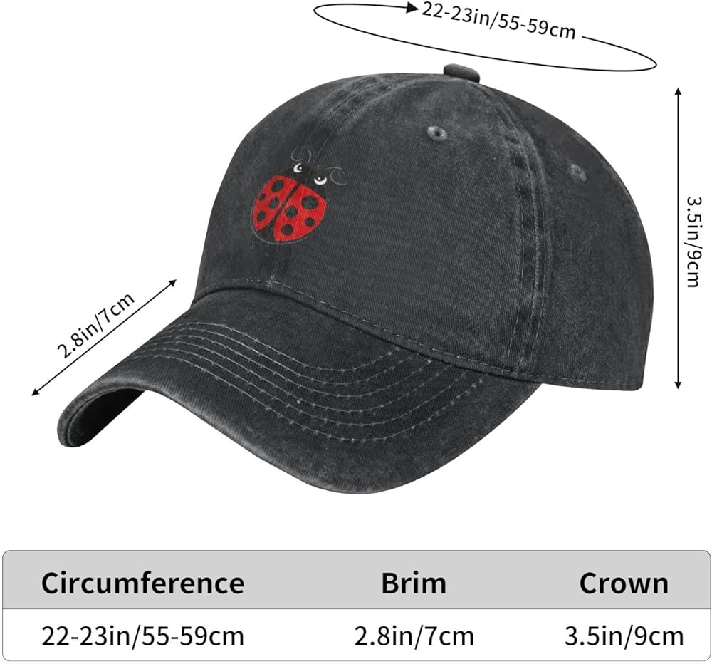 Ladybug Distressed Adjustable Washed Denim Mens Dad Trucker Hat Baseball Ball Cap for Men