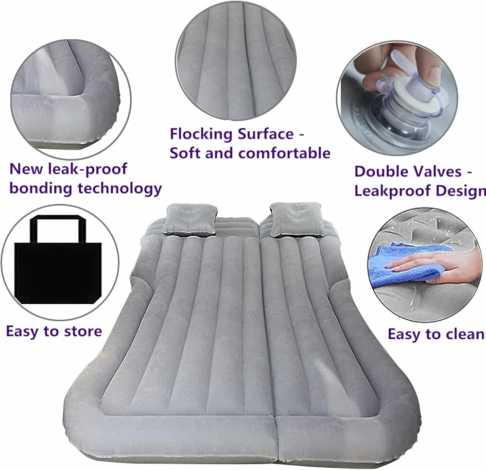 【QUALITY MATERIAL】: The car air mattress is made of thickened PVC and flocked material, easy to clean, elastic and comfortable, excellent texture, comfortable and durable, inflatable to last!