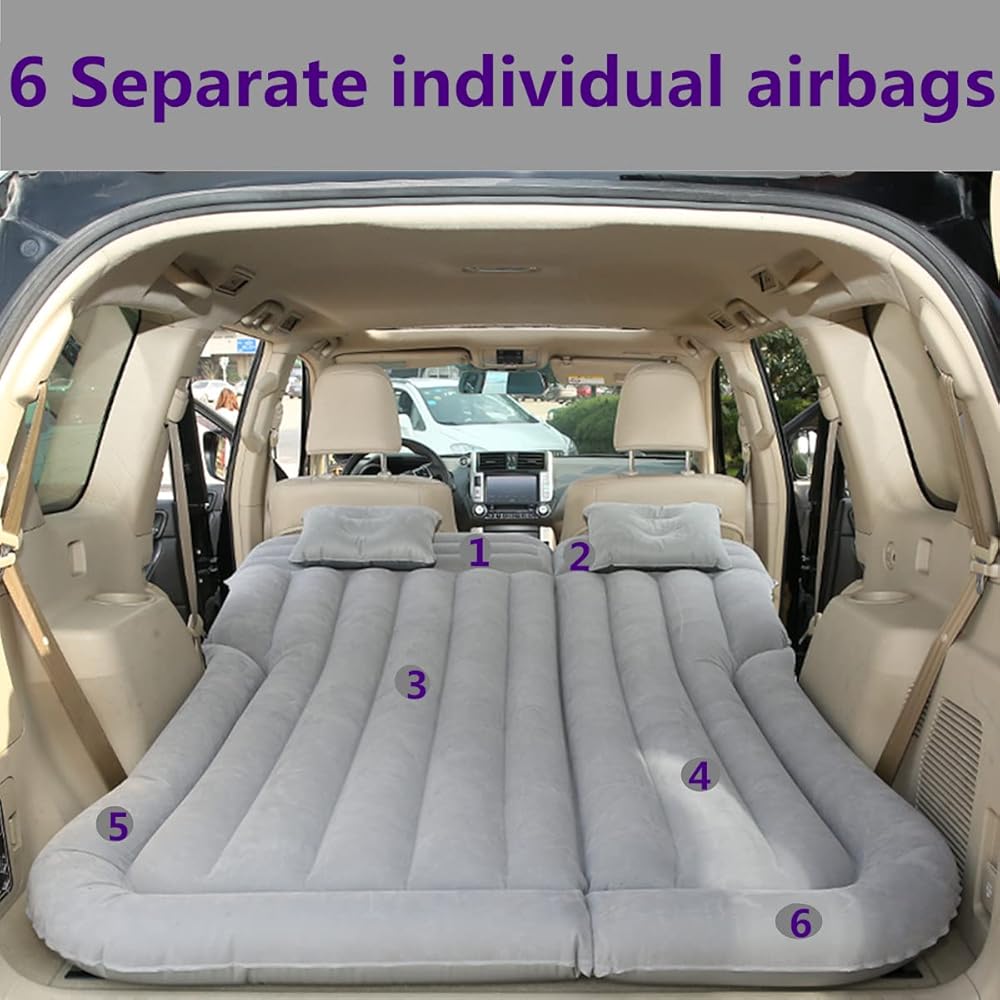 【SPECIAL DESIGN】: The travel inflatable mattress is equipped with 6 individual airbags which is easily to adjust the size to fit in your car or based on personal need; Super bearing capacity up to 660lbs (300kg) weight, allows 2-3 adults to use.