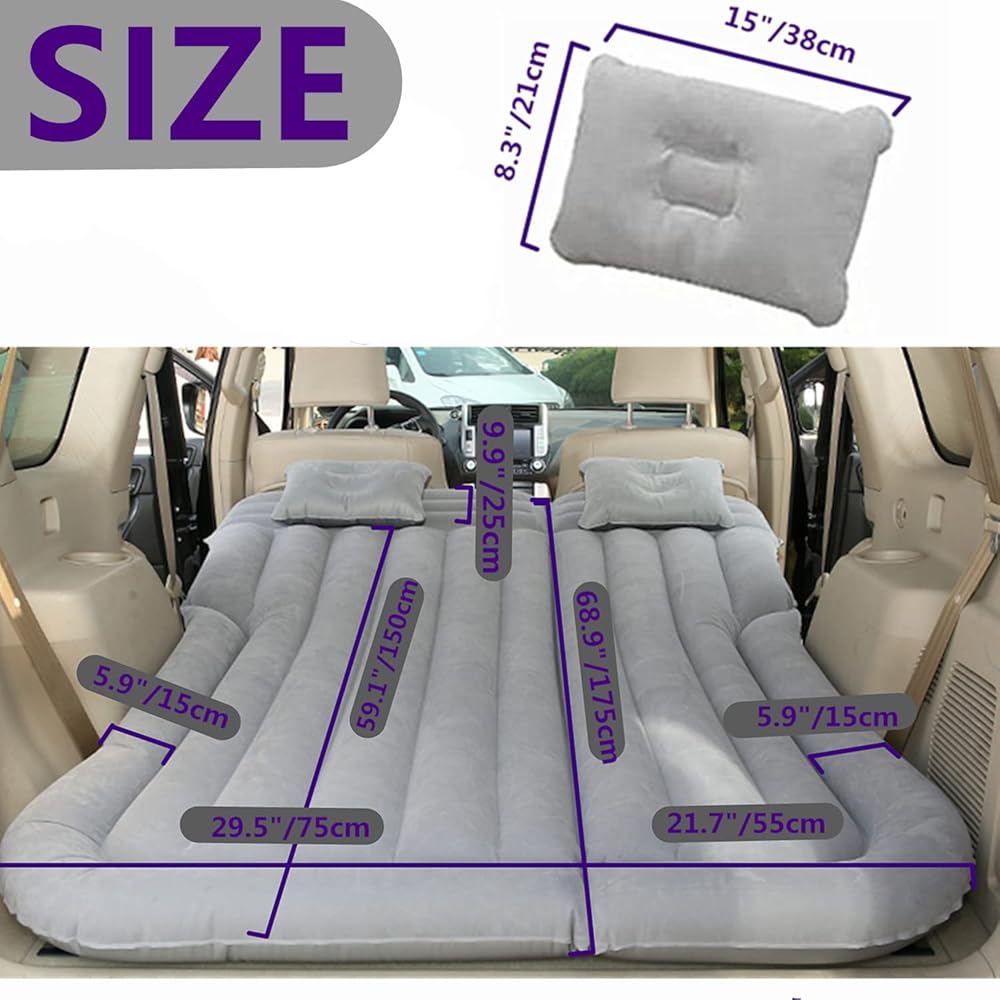 【WHAT YOU GET】: The backseat car mattress set includes 1* SUV Inflatable Mattress (Inflated: 175x130x15 cm), 2* Pillow, 1* Electric Air Pump,3* Nozzles, 1* Carry Bag, 1* User Manual.