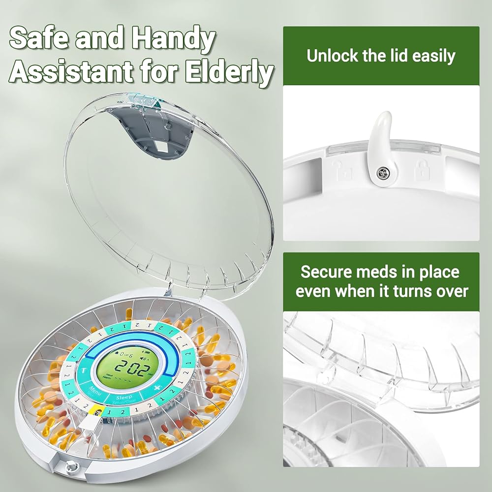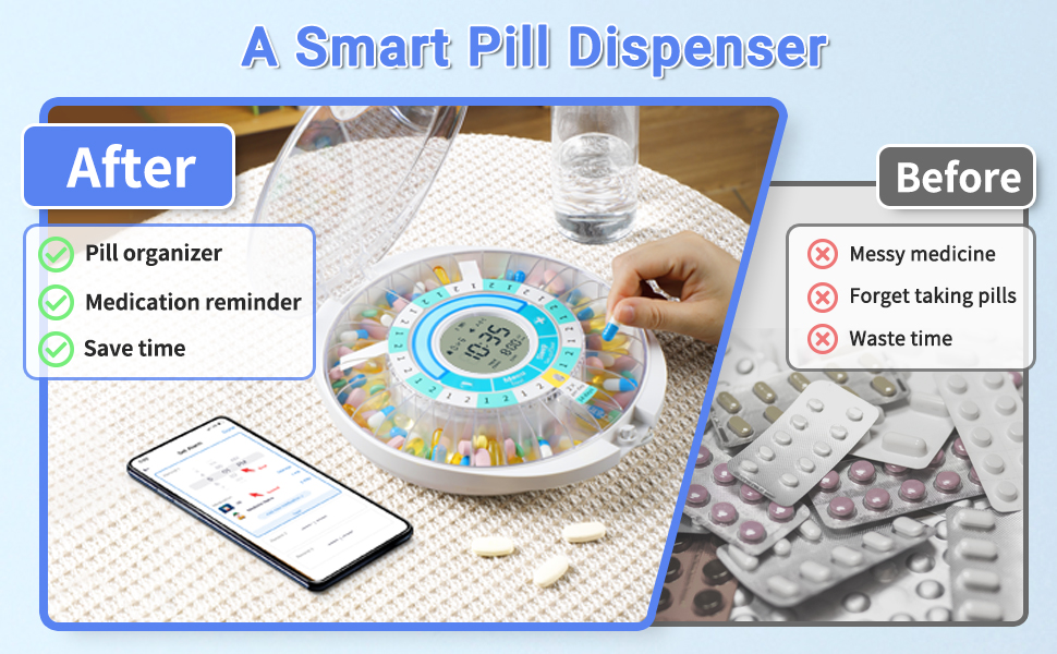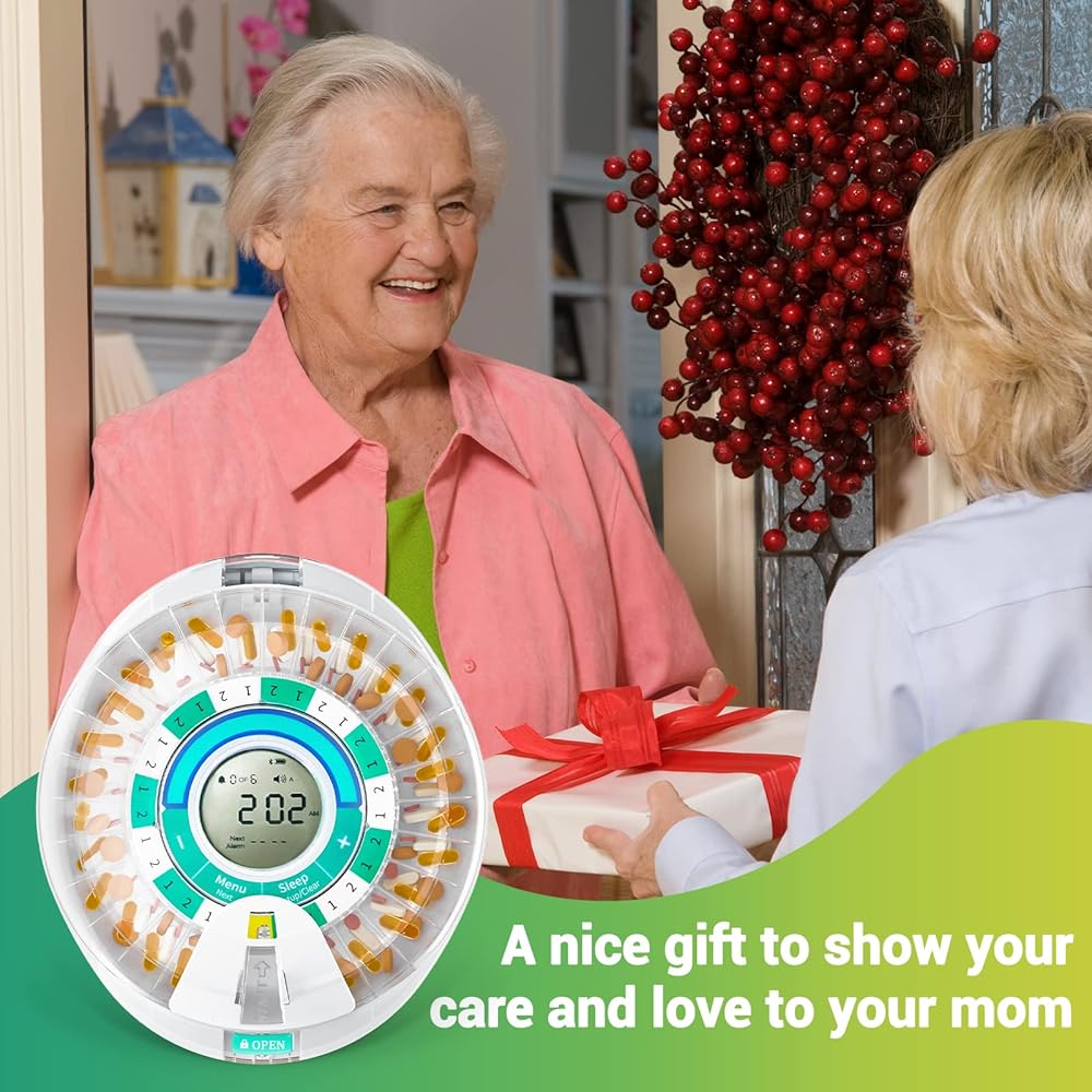 [Warm Gift for Elderly] Send this automatic pill dispenser as a gift to your mom or father, showing your care and love to your mom or dad. Organize their quantities of medicine, remind them by sound and light flashing; Keep their medication on track with ease. Keep your mom and dad healthy!
