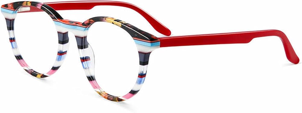 【Product Descriptions】Add a touch of cosmic glam to your look with these multi-colored round glasses. The glossy hand-polished acetate frame is accented with an ever-so-slight cateye tilt. Amazingly versatile, this style works well as both glasses and sunglasses.
