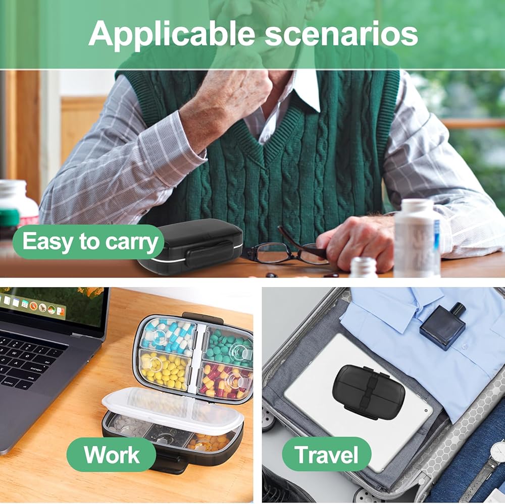 Designed for Travel: For easy portability during your journeys, two moisture-resistant silicone sealing rings have been added. Even if the pillbox accidentally falls into the water, it will still protect your medications from getting wet.