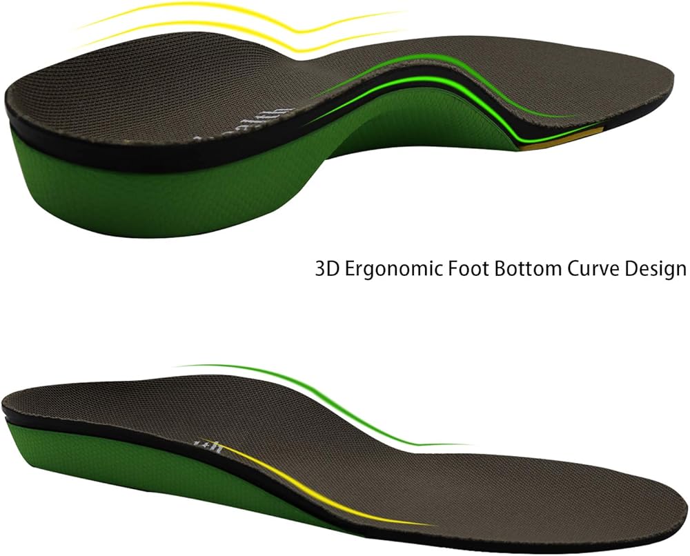[ERGONOMIC FULL-LENGTH INSOLES]: The perfect curve of the orthotic insole is designed in accordance with the foot structure, ergonomic and biomechanical, and out of doctor's data from patients and ergonomic knowledge. Orthotics are crafted from premium medical grade EVA foam, a smooth and breathable fabric layer is added to keep breathable and make the feet cool by sucking up all the sweat and moisture. Keep your feet comfortable and dry even in hot weather.
