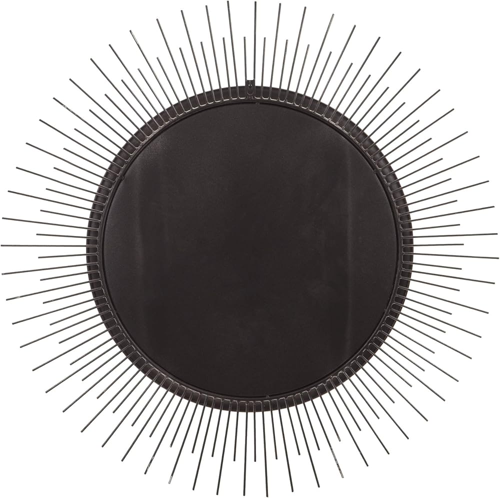 Constructed of iron, this circle mirror features a sunburst frame inspired by vintage decor of the 1960s