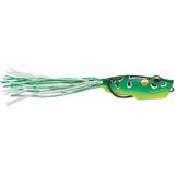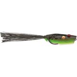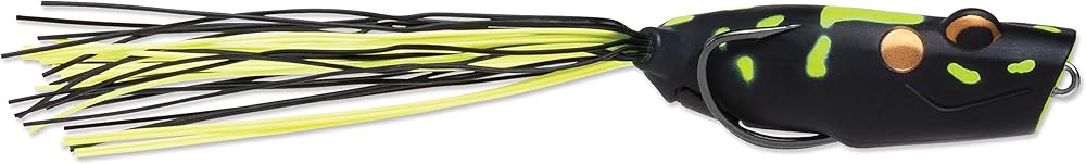 Topwater fanatics, get ready for action. The Popping Frog with its cupped face will create a loud, strong pop that drives fish crazy. Custom designed weight is shaped and positioned to stay out of the way of the hook. This design creates a responsive, easy to impart, walking action. Extra-wide hook gap converts strikes into fights. Features: - Perfect walking action - Extra soft body compresses easily - Lifelike round rubber legs - Heavy-duty welded line tie - Premium VMC double hook Specifications: - Body Length: 2 1/2" - Weight: 9/16 oz - Color: Black Camo - Quantity: Package of 1