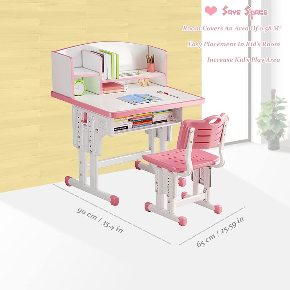 Large Desktop: Children's desk is equipped with a large 17.72*27.56 inch table top, which ensures that your children have enough space to study and play. The multifunctional bookshelf provides more diverse storage space to meet your child's needs.