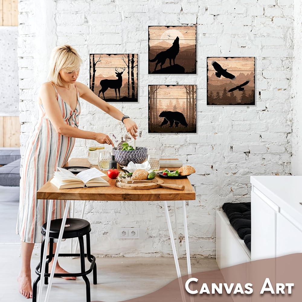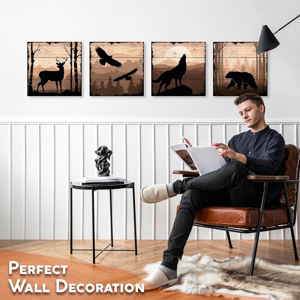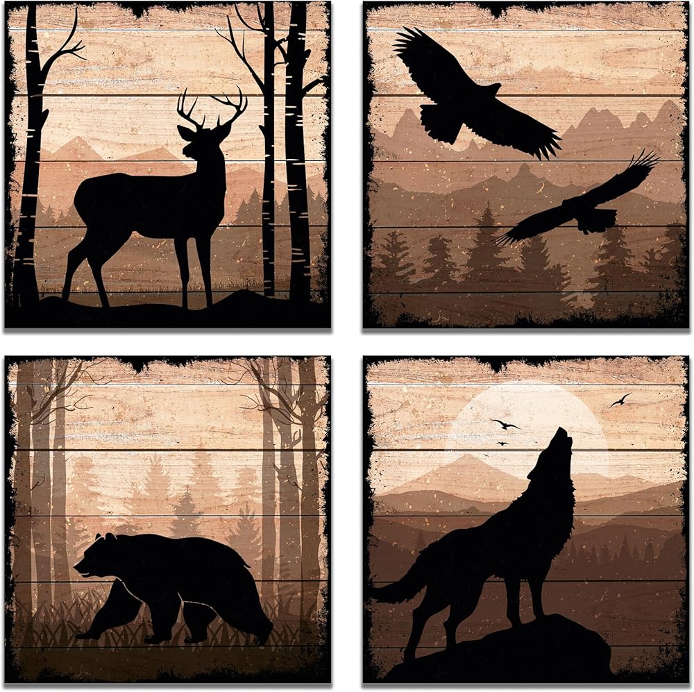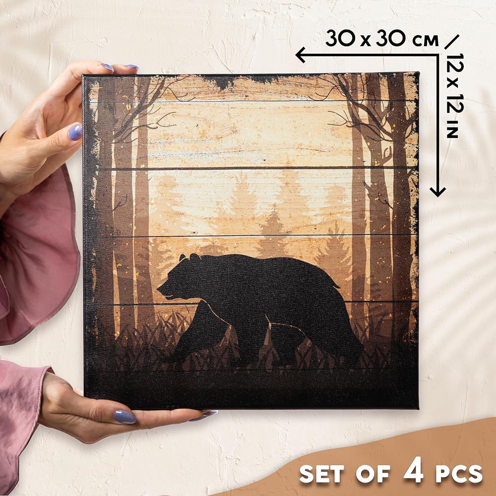 Mountain Wall Art Size : Embrace a set of four 12x12 inch (30x30 cm) animal canvas prints, each featuring our captivating design, perfect for amplifying the rustic ambiance.