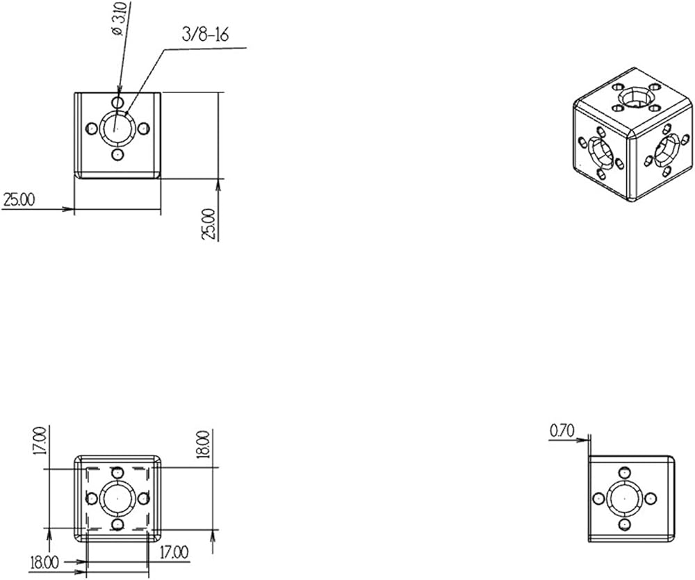Block square 3/8" screw threads mounting plate bracket for camera rig kit, with 2x 3/8"-16 Screw, size 25*25*25mm