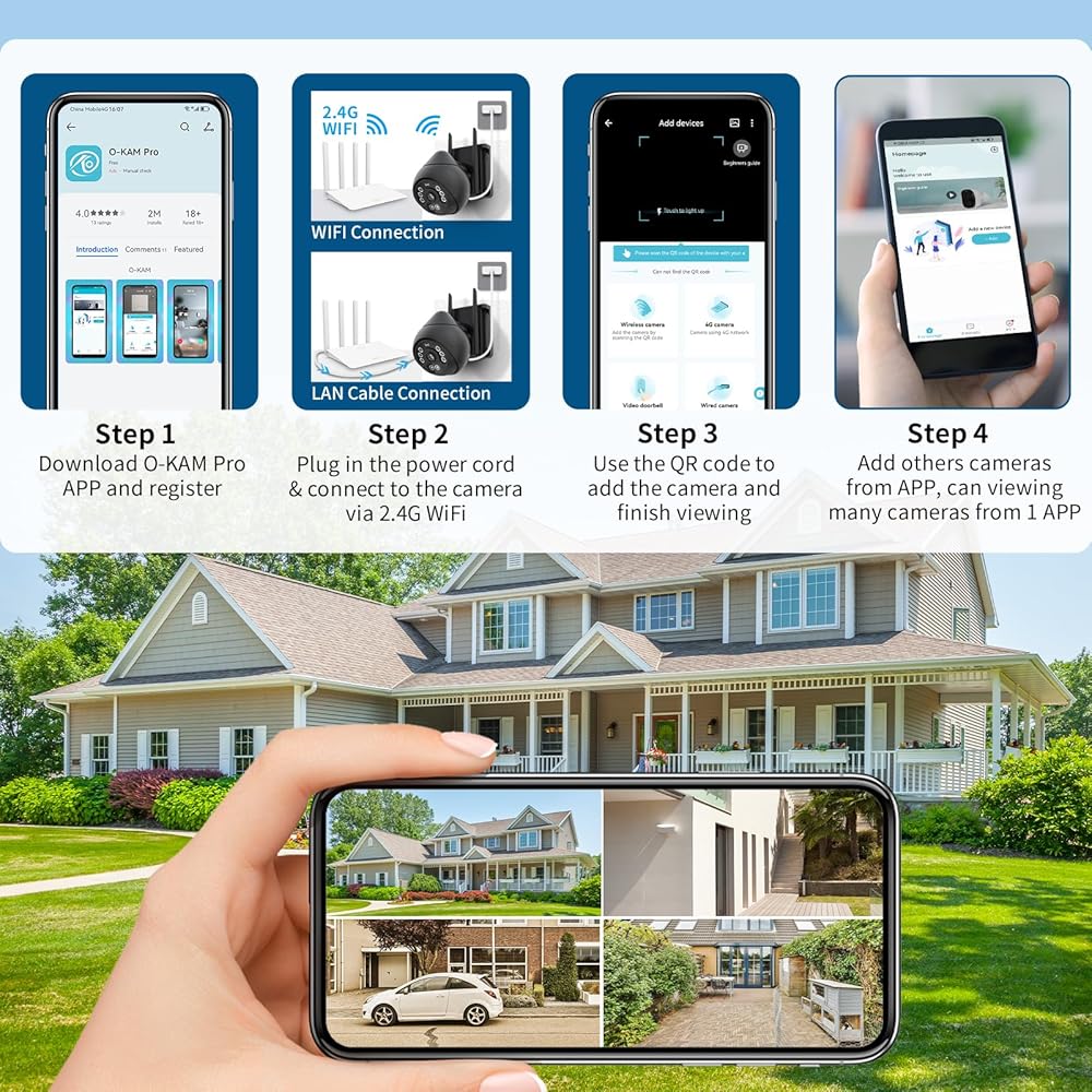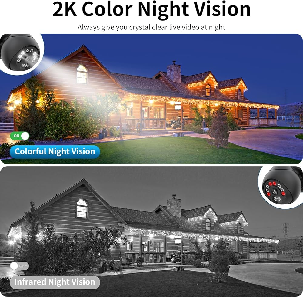 【Colorful Night Vision & Two-Way Audio】With infrared LEDs and white lights, this home security camera features advanced night vision, it will help you protect your home security from day to night. There are three night vision modes for you to choose from. This 4MP outdoor WiFi camera has a built-in speaker and microphone so you can talk to visitors in real time or warn unwanted intruders.