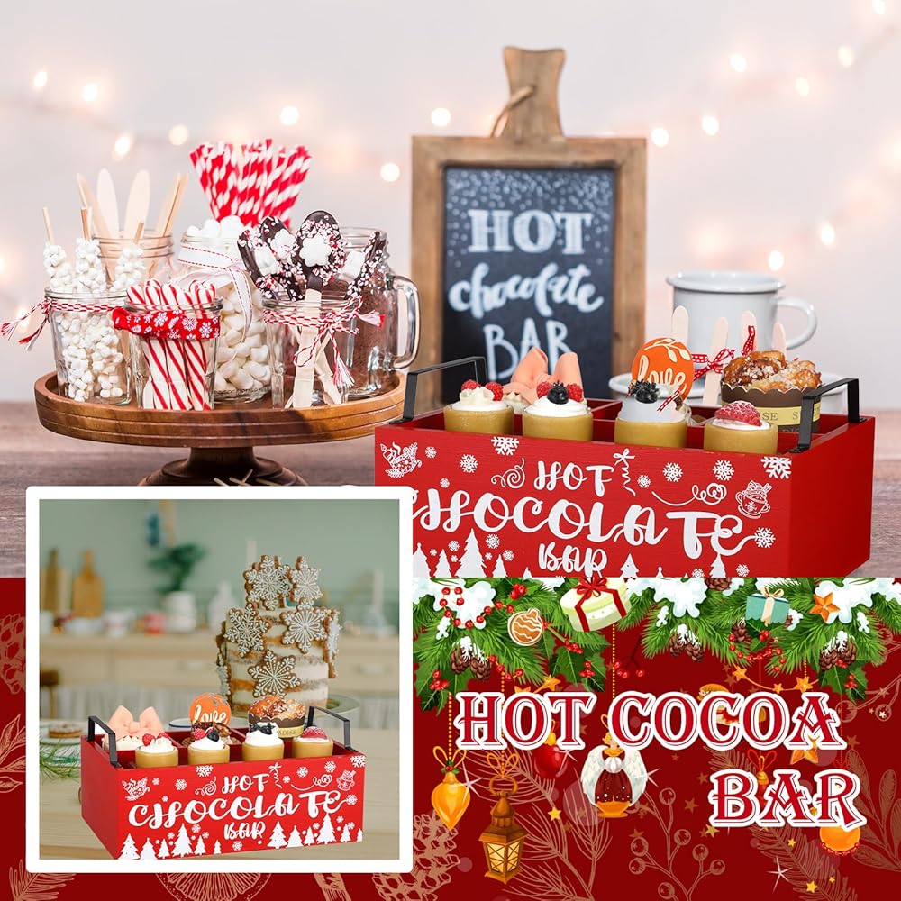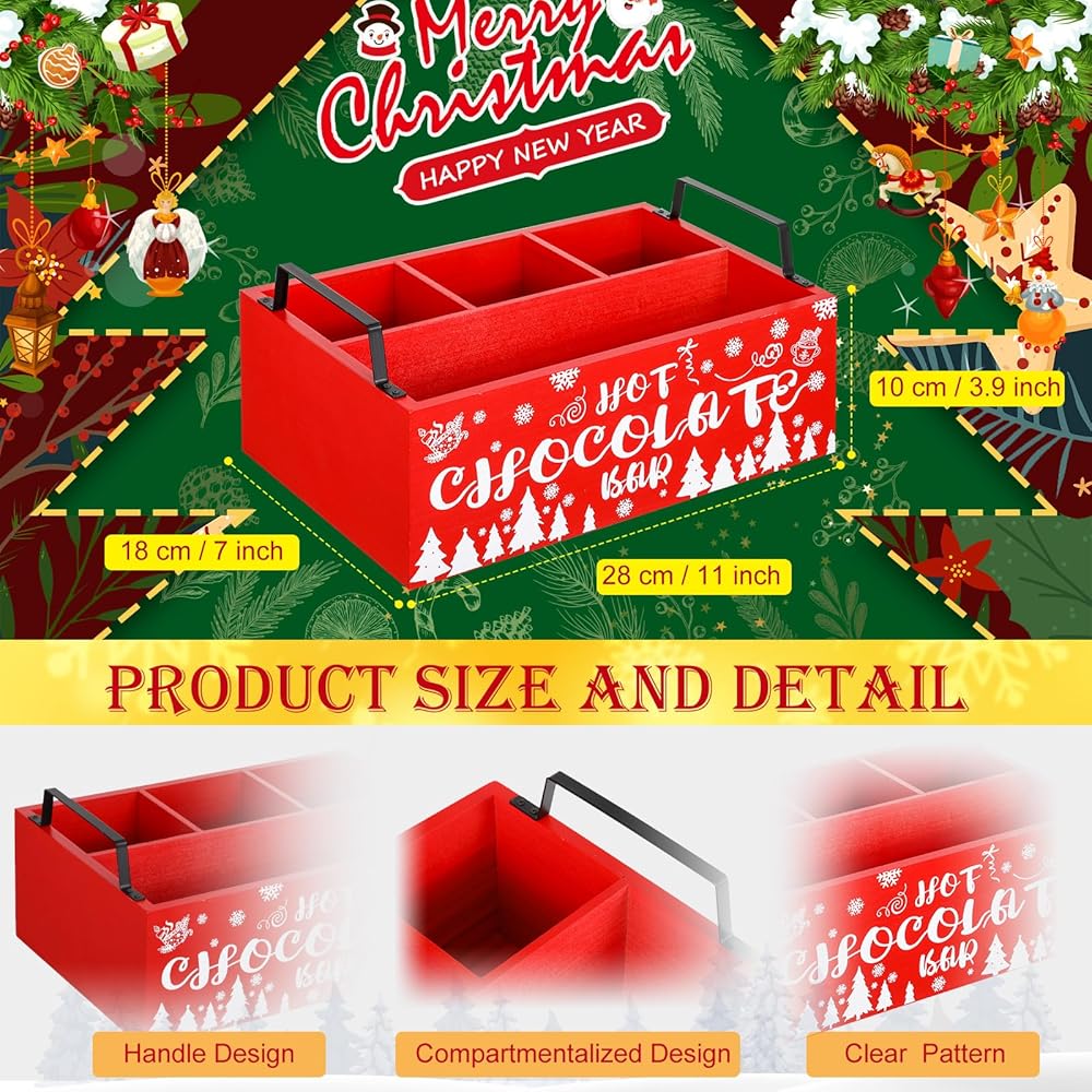 Our hot cocoa bar holder for countertop is not only usable, but also beautiful in Christmas colors. You can give it to your partners, colleagues, family members, neighbors, classmates and your loved ones, and feel the Christmas atmosphere with them.