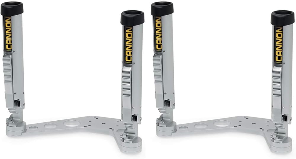 The Cannon Dual-Axis Adjustable Downrigger Mount Rod Holders can be mounted between the mounting base and swivel base of your Cannon downrigger for unparalleled rod positioning. A pistol grip release allows for quick, one-handed angle changes, and the innovative ratcheting adjustment system allows you to easily pull the holder to a vertical position. Full 360 degree rotation makes it the ultimate fishing accessory. Dual-axis adjustable rod holder positions rods vertically or easily remove them, thanks to the innovative ratcheting adjustment system on our rod holders.