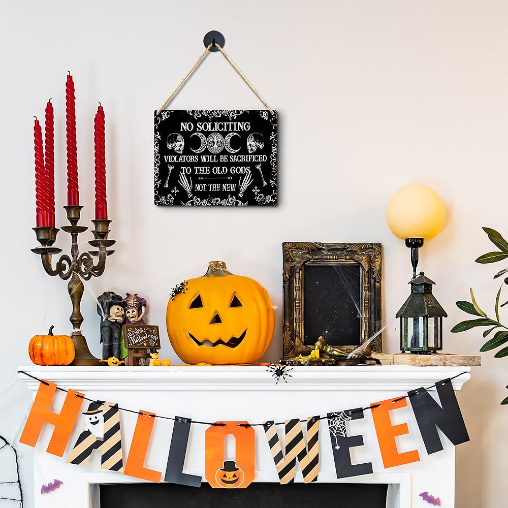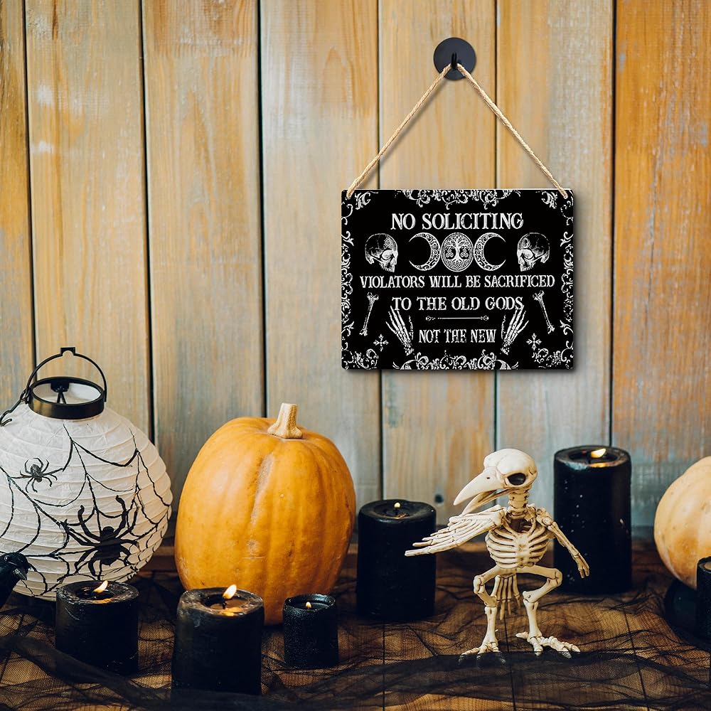 Lacosu Wall Pediments No Soliciting Sign for House Home,No Soliciting Welcome Sign for Front Door,Witchy Wall Decor,Gothic Wall Decor,10x8 Inches