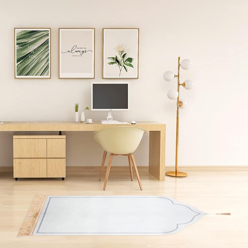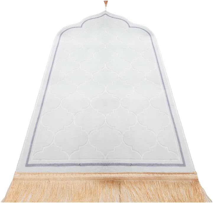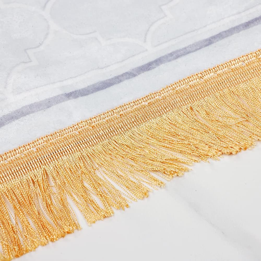 Great gift for a Muslim for New year, Ramadan, Aid el-Adha, etc. Suitable for men, women and kids. Janamaz Sajjadah for Muslims made of soft plush flannel, anti-slip back, easy and convenient to use. Allows you to be comfortable even on the hard ground during prayer. Great Muslim rug and thick prayer rug for daily salah prayers for Muslims. Washed on gentle cycle, cold, in a washing machine, but be aware that the tassels may come loose. We do not recommend regular washing.