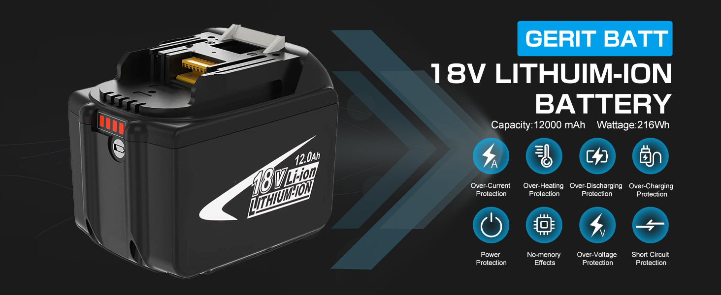 BASIC INFORMATION : Voltage: 18V | Capacity: 12000mAh | Battery Type: Lithium | Quantity: 1 Packs Replacement for Makita 18 Volt battery