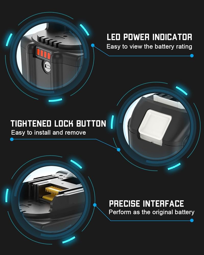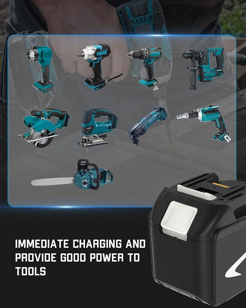 PERFECT COMPATIBILITY : Compatible with Makita 18V BL1860B, BL1860, BL1850B, BL1850, BL1840B, BL1840, BL1830B, BL1830, BL1820, BL1815, BL1825, BL1835, BL1845, 194205-3, 194309-1, 194204-5, 196399-0, 196673- 6, lxt-400 battery and work with DC18RD DC18SD chargers