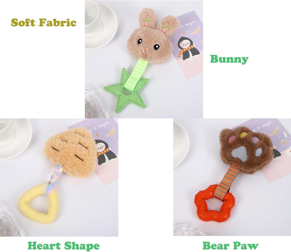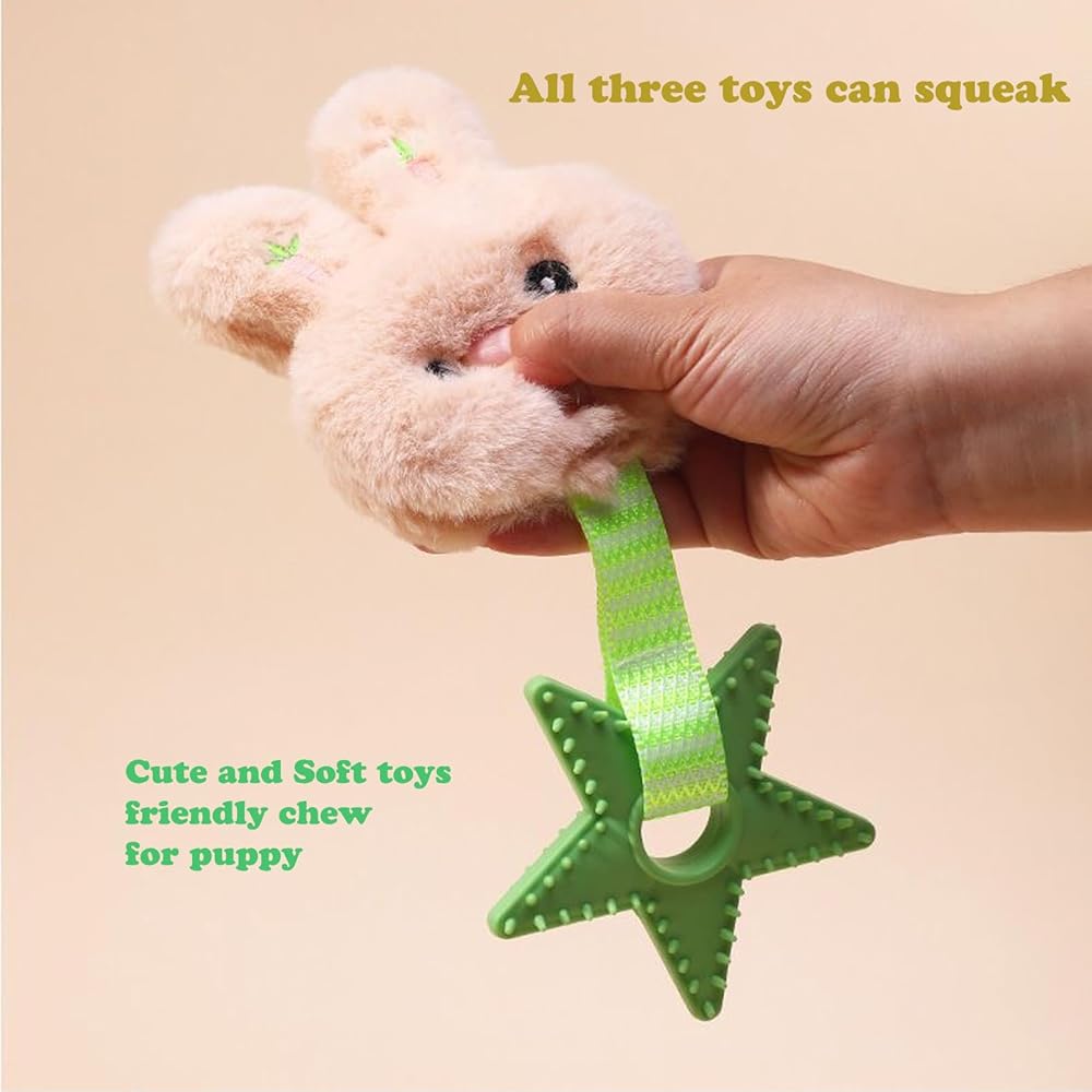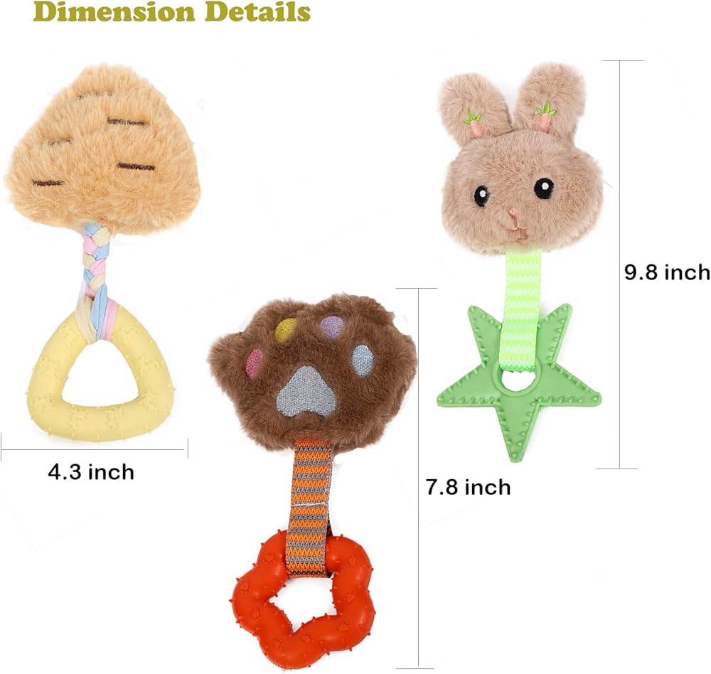 【3 cute chew toys for small dogs】Includes three adorable puppy chew toys, perfect for teething and providing relief during the puppy teething process.