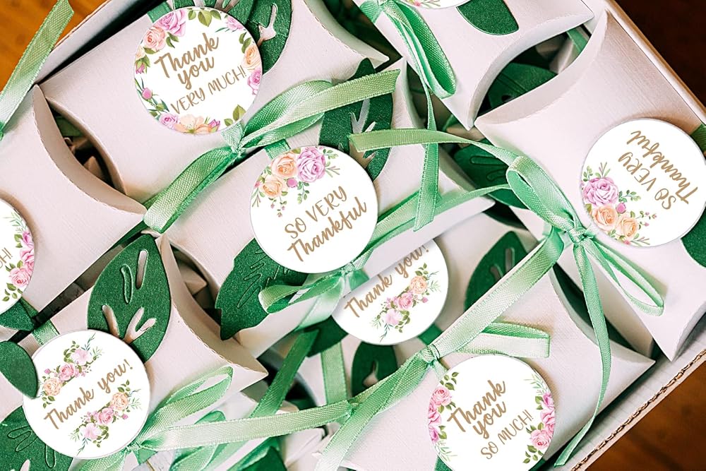 PNTKION 80 Pieces Cute Rose Flower Wreath Thank You Stickers, Wedding Baby Shower Birthday Party Decorate Watercolor Floral Themed Party Gift Wrap Bag Label Decorations
