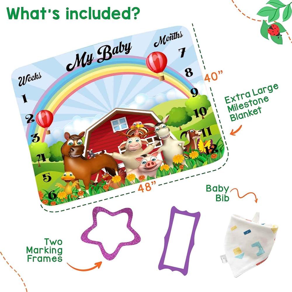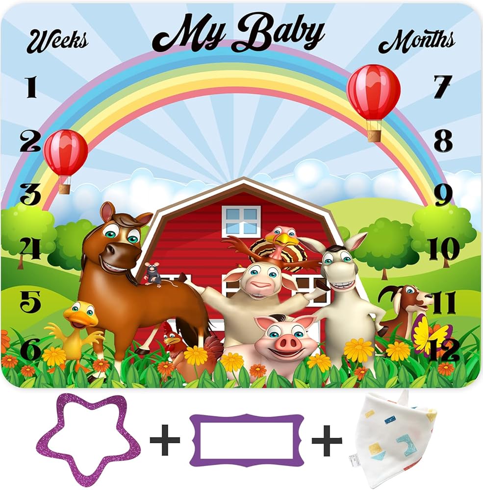 KIKIDOR Personalized Farm Blanket Monthly Milestone Farm Animal Blanket Farm House Blanket Animal Throw Blanket Baby Farm Animals Nursery Farm Receiving Blanket Growth Record Blanket 48x40inch