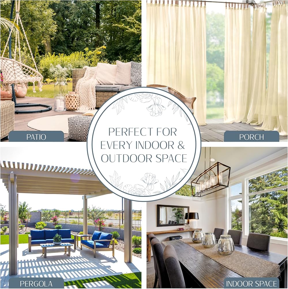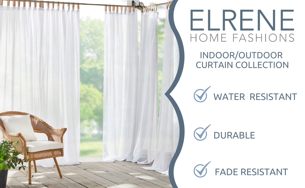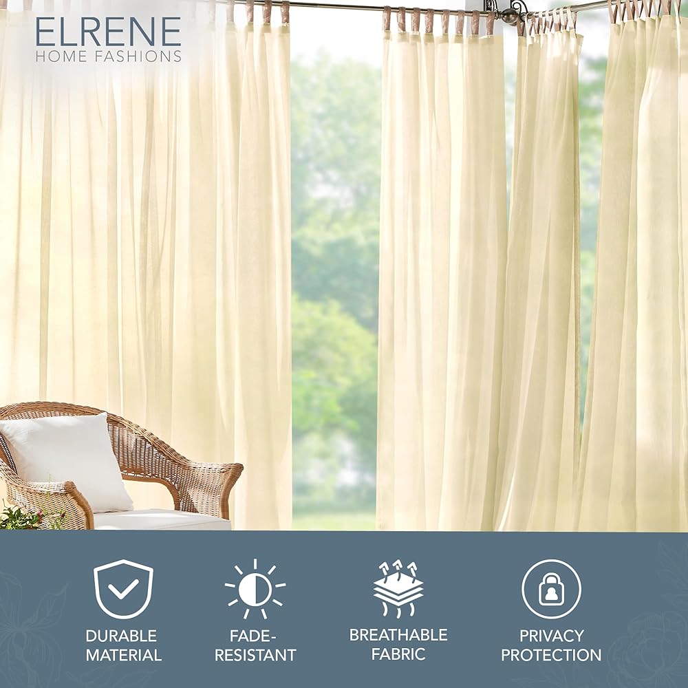 Elrene Home Fashions provides fashionable home decor to suit any style. Enjoy warm, sunny days with the flowy elegance of our Darien Solid Sheer Indoor/Outdoor Curtain Panel. With adjustable 4-inch hook-and-loop adhesive top tabs, this panel is easy to hang and has a beautiful soft draping effect. The top tabs will fit up to a 2-inch-diameter curtain rod. This single drape comes in a variety of sheer natural colors to add simple elegance to indoor or outdoor areas. Increase the beauty and privacy of your patio enclosure, deck, gazebo, or lanai, or decorate your living-room or bedroom window with this lovely curtain.