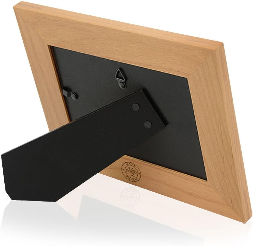 Curved beveled edges. Complete with glass front. Back stand easel for table display. Wall-hanging clips for wall mounting