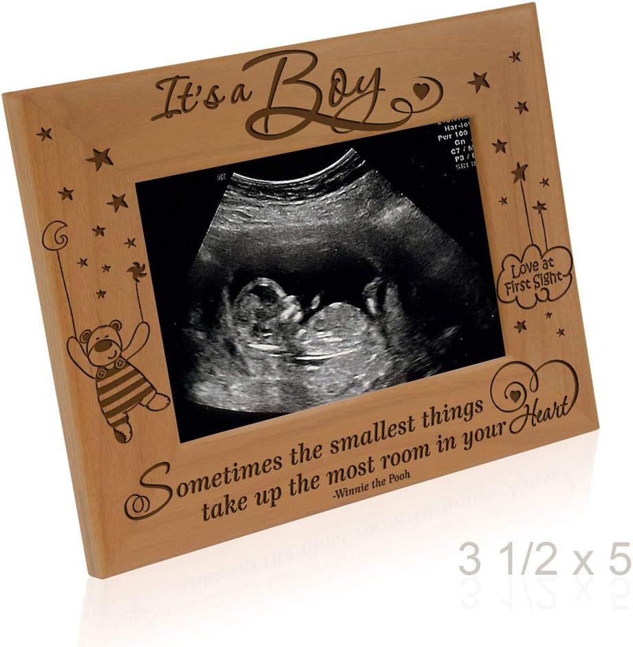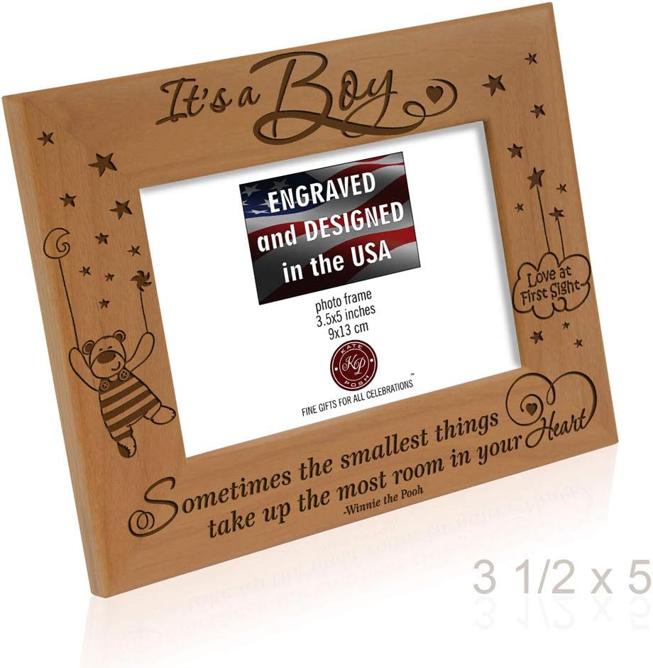 KATE POSH Baby Engraved Wood Picture Frame - Sometimes The Smallest Things take up The Most Room in Your Heart - Winnie The Pooh Sonogram Picture Frame, New Mom, New Dad (3 1/2 x 5 - It's a Boy)