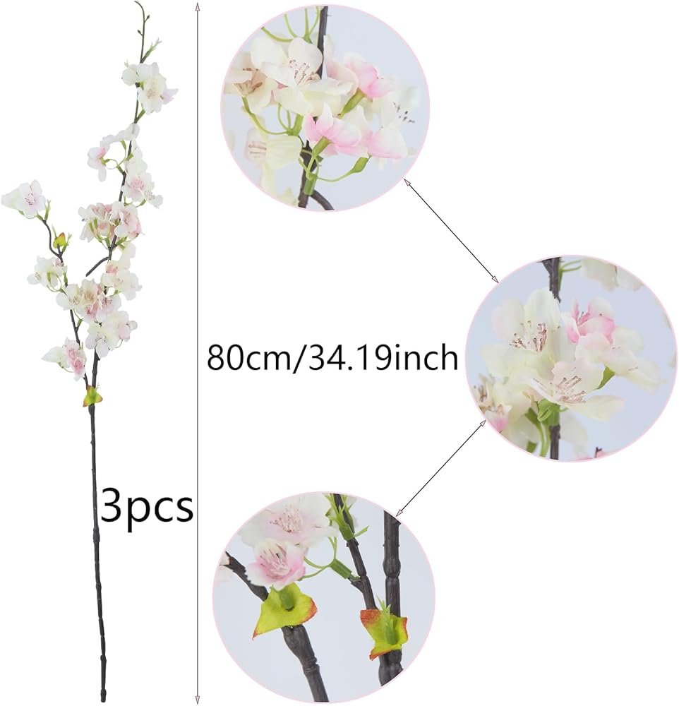 3 Pcs Artificial Flowers Cherry Blossom Branches