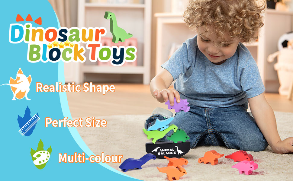 🦕【Learning Wooden Toys】 The Wood dinosaur Blocks Stacking Toys can exercise children's concentration power, thinking ability, hands-on ability, and patience. Kids will learn to discover an approach to perfectly balance different dinosaurs during observation and practices. Great educational wooden toys for kids.