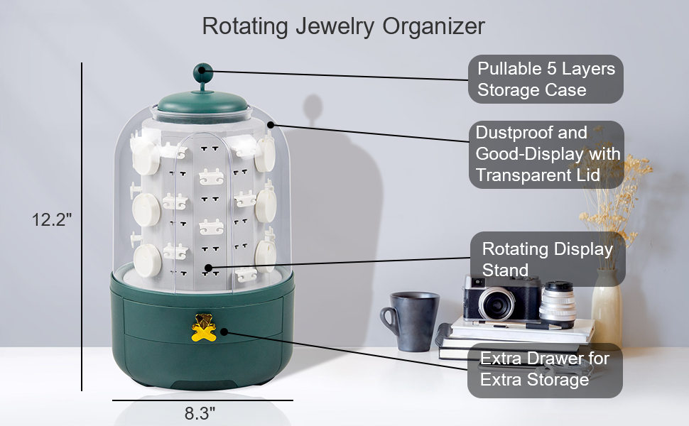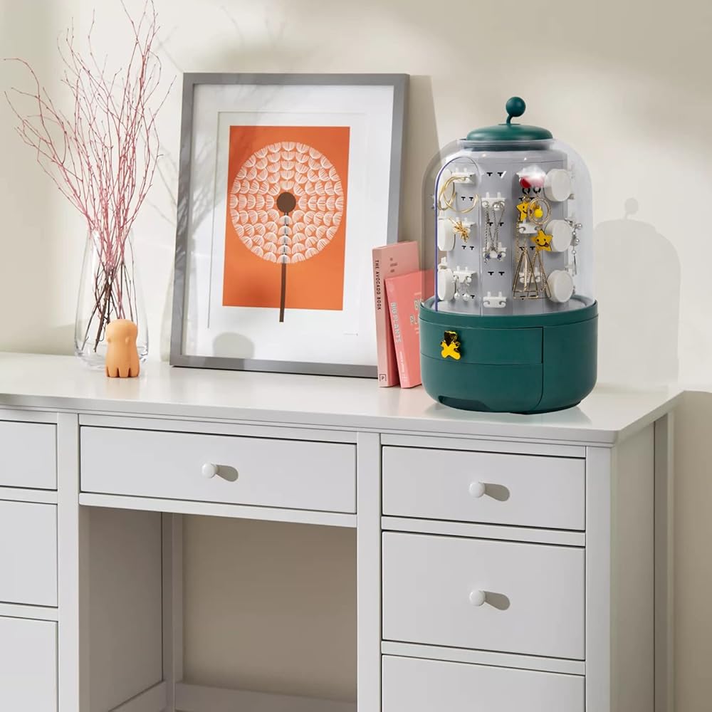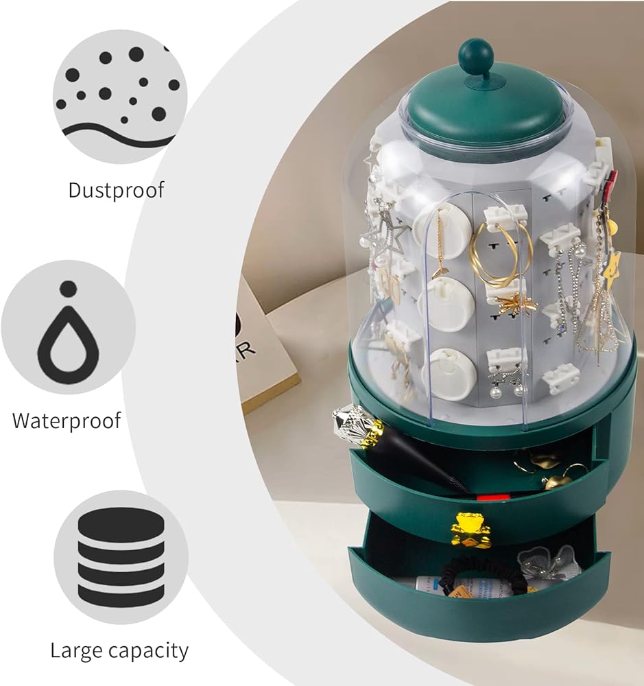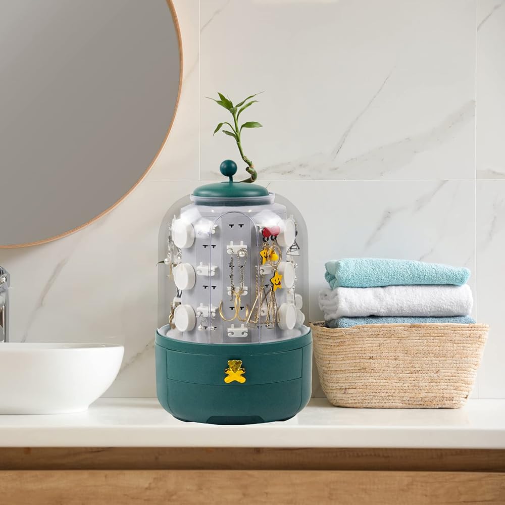 🌈[360° Jewelry Rotation Display]: The jewelry organizer for girls women can display all elegant earrings and necklaces with 360 degree rotation stand, good-looking at bedroom and bathroom. Easy to pick which to wear.