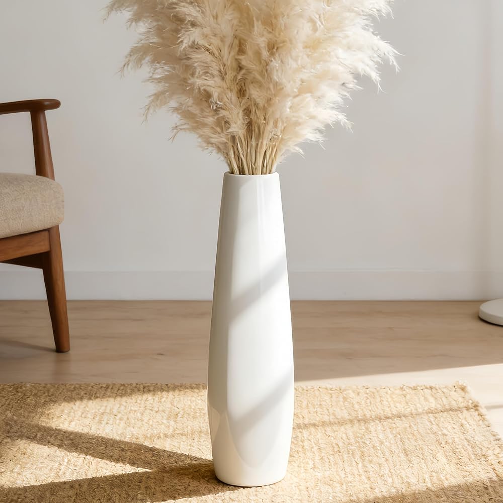 【High quality ceramic material】The tall vase body is made of high quality ceramics,The bright and smooth surface, elegant origami art design, looks more texture. The cutting surface of the bottle mouth is smooth, the bottom of the bottle is polished and flat, and it is not easy to dump to ensure stability.