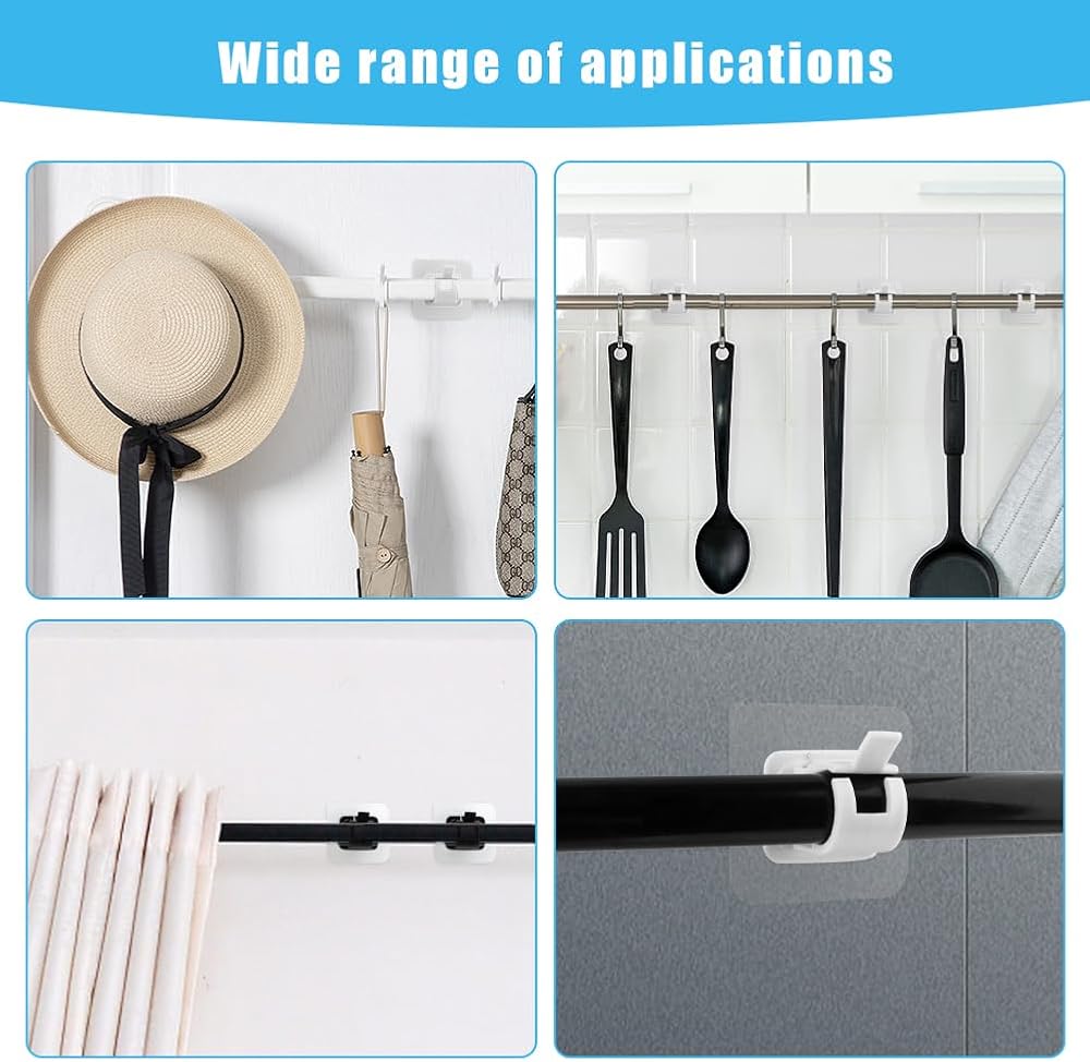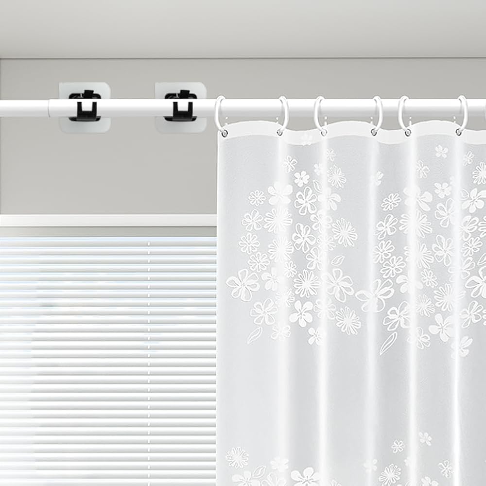 【MAIN MATERIAL】Curtain rod holder made of ABS material, sturdy and durable, strong adhesive, firm paste, strong load-bearing capacity, stable and not falling, waterproof, size about 6x6cm/2.36x2.36inch