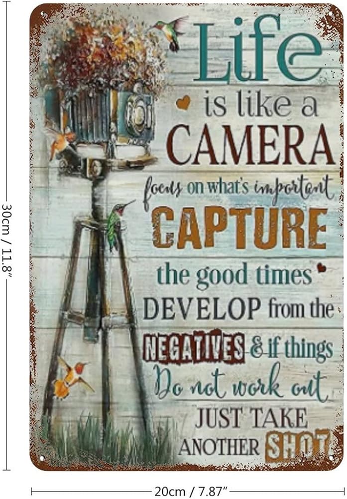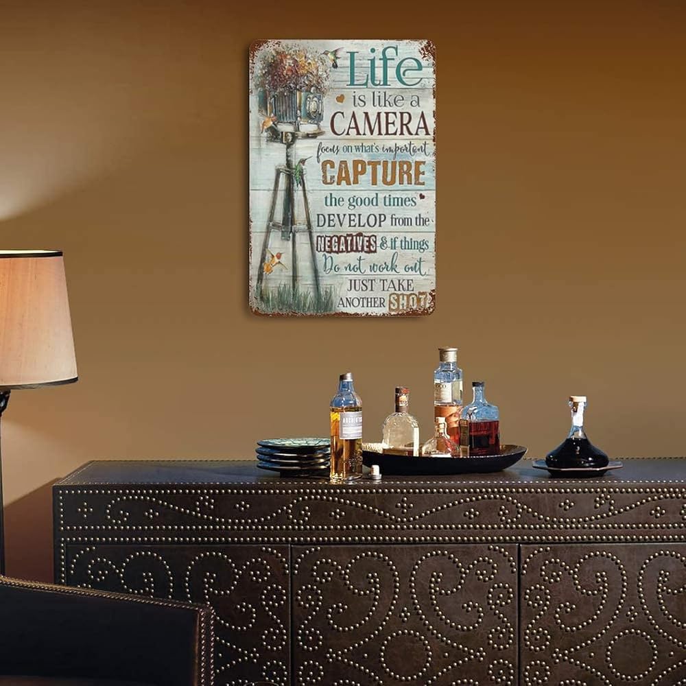 خمر تين علامة المصور الحياة مثل الكاميرا التركيز على ما هو مهم التقاط الرجعية جدار الفن ديكور الحديد اللوحة للمنزل المطبخ مقهى حانة علامة اللوحة الهدايا لمحبي التصوير الفوتوغرافي 12x8 بوصة