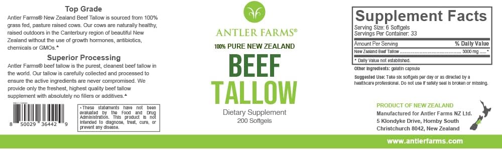 NUTRIENT RICH – Antler Farms Beef Tallow is a rich source of healthy saturated fats, omega 3 and 6 fatty acids, and conjugated linoleic acid (CLA). It also contains trace elements of essential fat-soluble vitamins A, D, E and K, and other minerals.