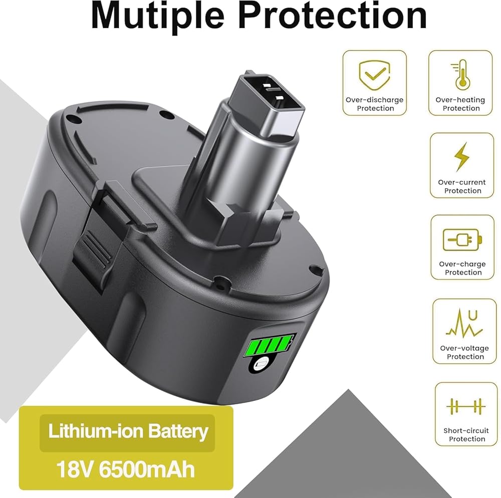 [Battery Specs] Replacement for dewalt 18 volt battery; Type: Lithium-ion; Voltage:18V; High Capacity: 6500mAh