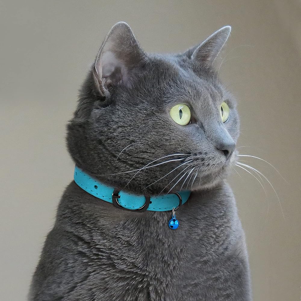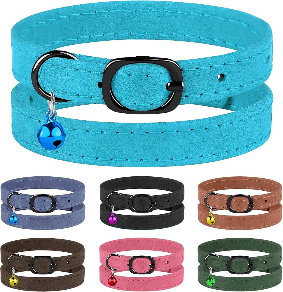 Our leather collar is designed to fit most of cats, adjusted from 7"- 10". Length - 10 1/2", Width - 1/2". For these cat collars we use high quality genuine leather and hardware which makes it comfort and durable. Available in 8 colors: Pink, Brown, Blue, Black, Green, Dark Brown,Sky Blue, Purple. These adjustable cat collars are suitable for everyday use. Our cat collar come with bright jingle bells.
