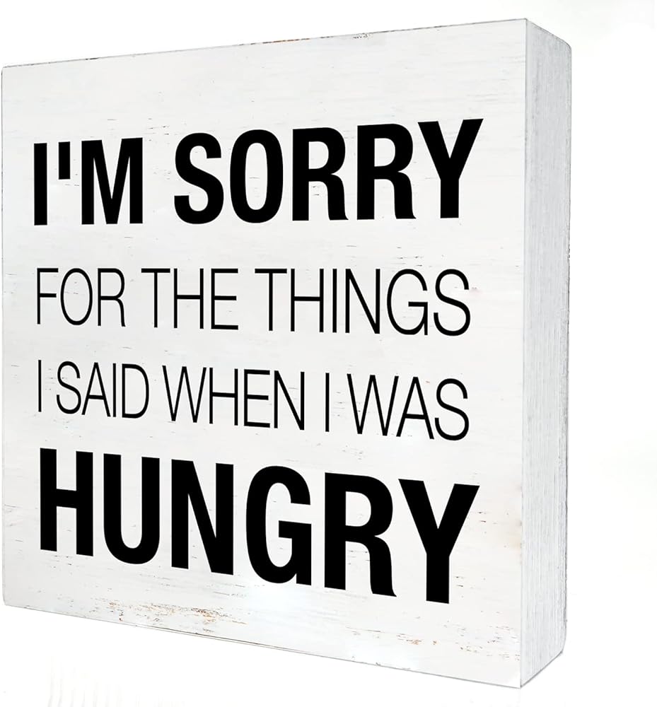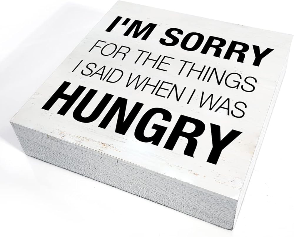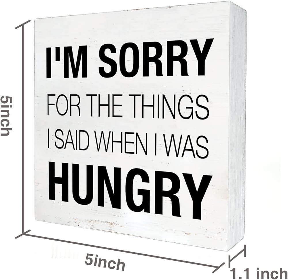 Humor Kitchen Quote Wooden Box Sign with Saying Desk Decor 5 x 5 Inch I'm Sorry for What I Said When I was Hungry Box Sign Wood Plaque Block Sign Rustic Home Decor