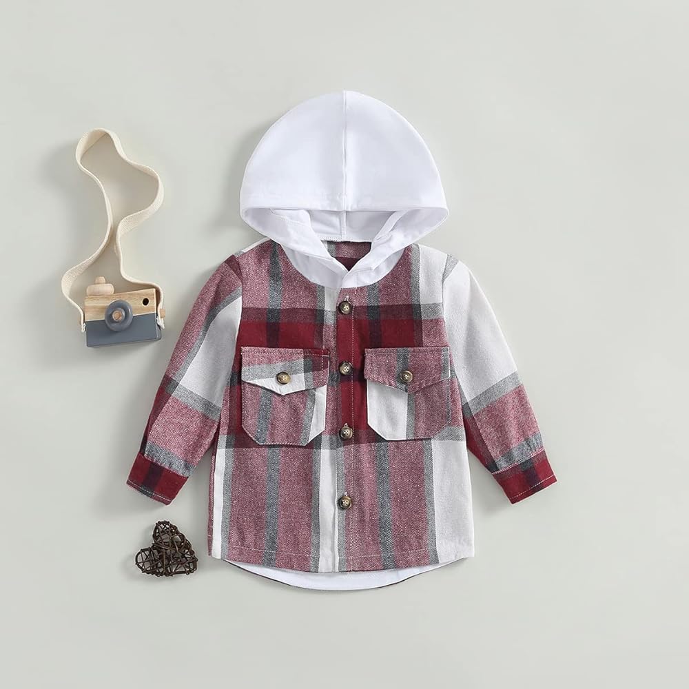 Features and Design: baby boy halloween outfits, baby girl halloween outfit, plaid design,black/red/white/blue/yellow color, long sleeves, hooded jacket, button down closure