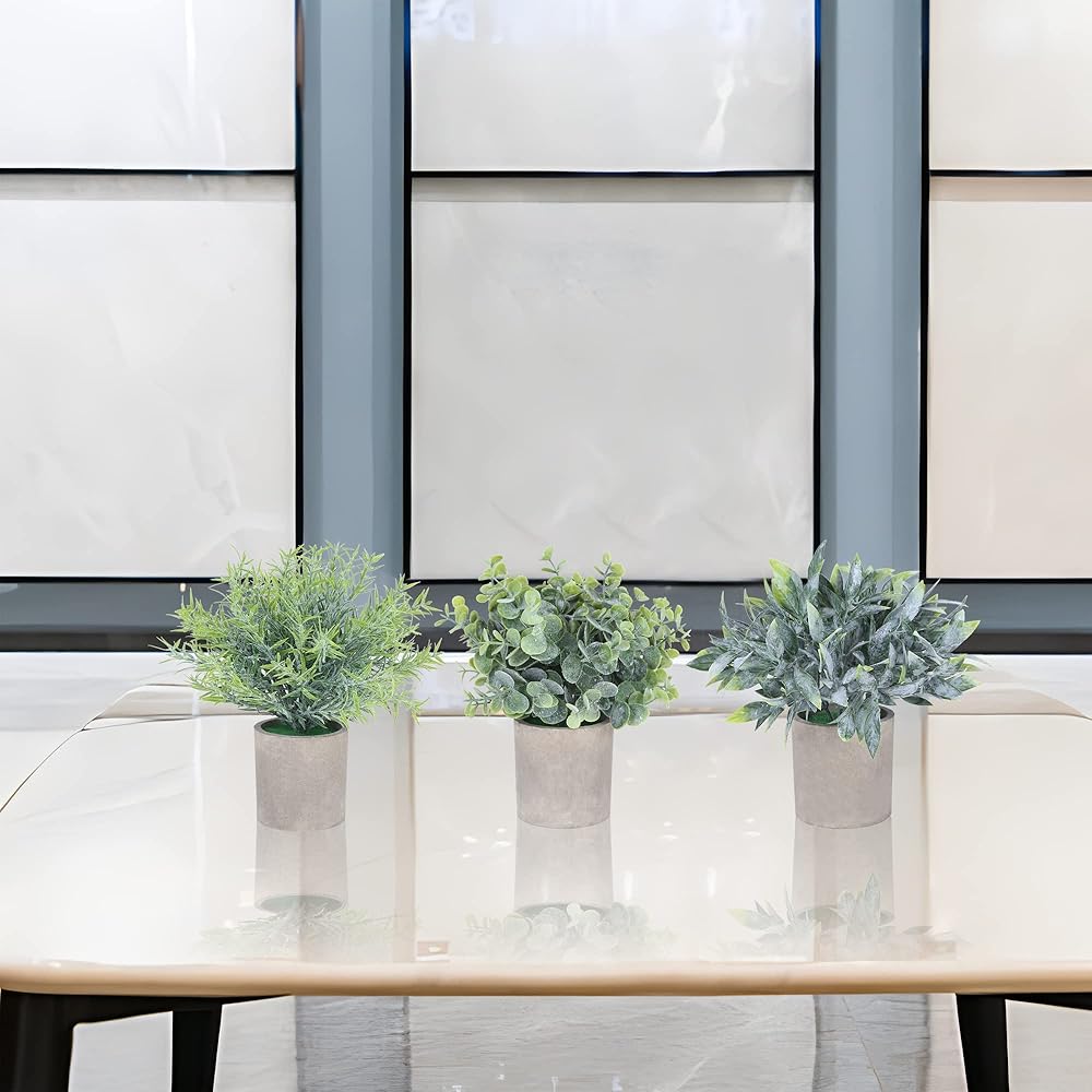 • 【Perfect Decoration】Our 3 mini potted artificial plants are perfect for your office, home, desk,bedroom, living room, bathroom, kitchen, farmhouse,balcony,floor,indoor outdoor decor. They also make a great gift for housewarming parties, weddings and holidays.