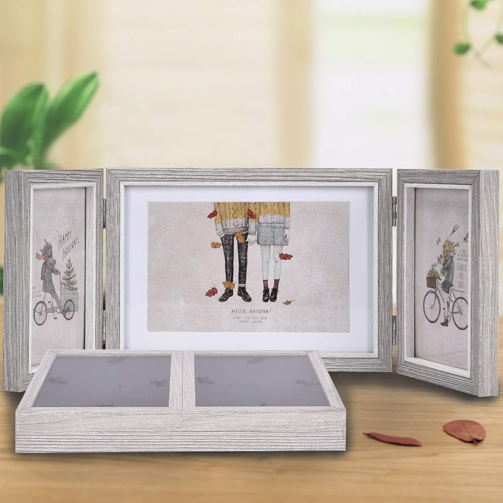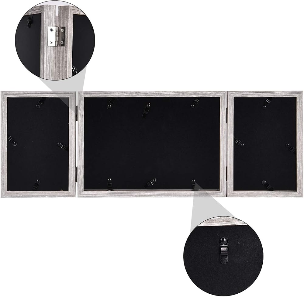 SUPERIOR MATERIAL: This triple hinged picture frame is made of durable wood material MDF that built for long lasting. High defination glass is clear, protecting your photos from dust and scratches.