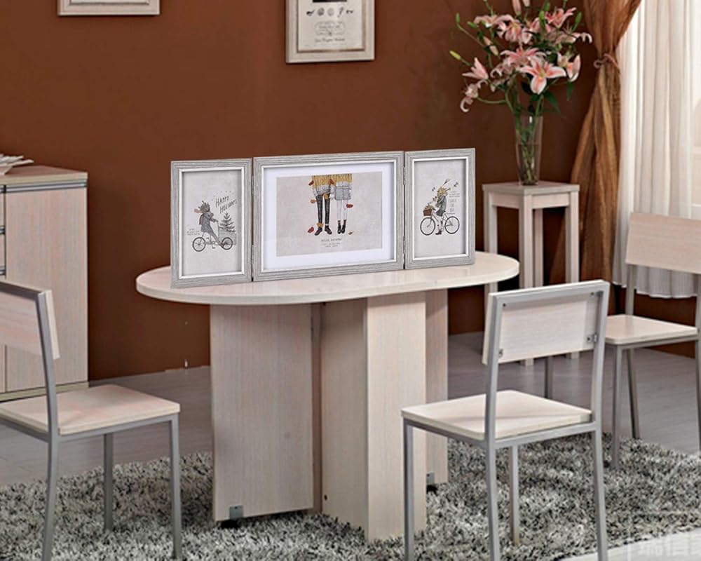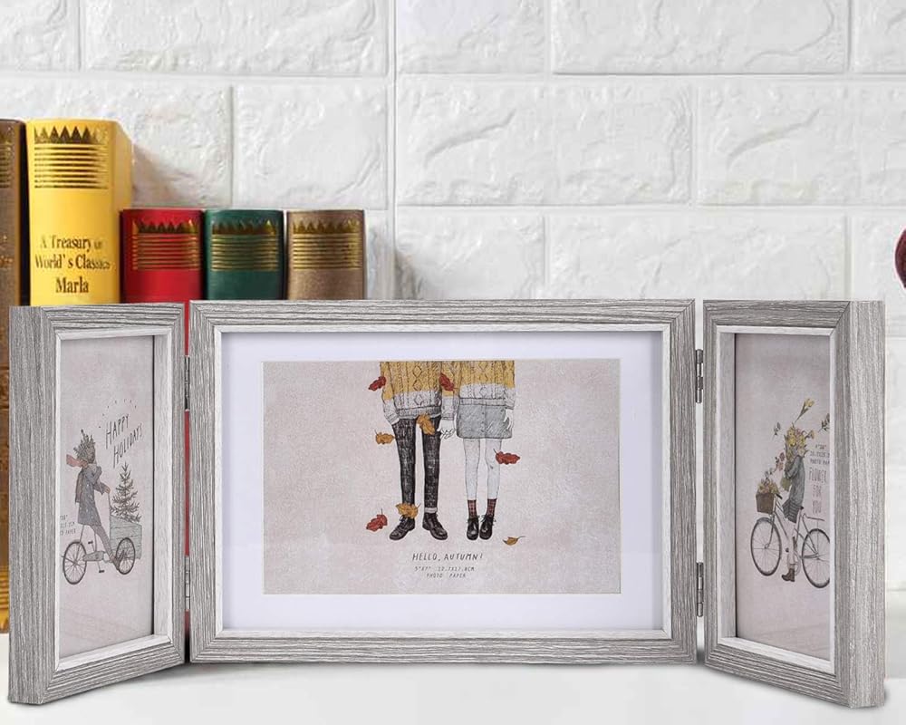 MULTIPLE PHOTOS DISPLAY: Natural wooden frame with sturdy hinges to provide support. Holds 2 pcs 4x6 vertical without mat and 1 pcs 5x7 horizontal picture with mat. Displays on tabletop or desktop.