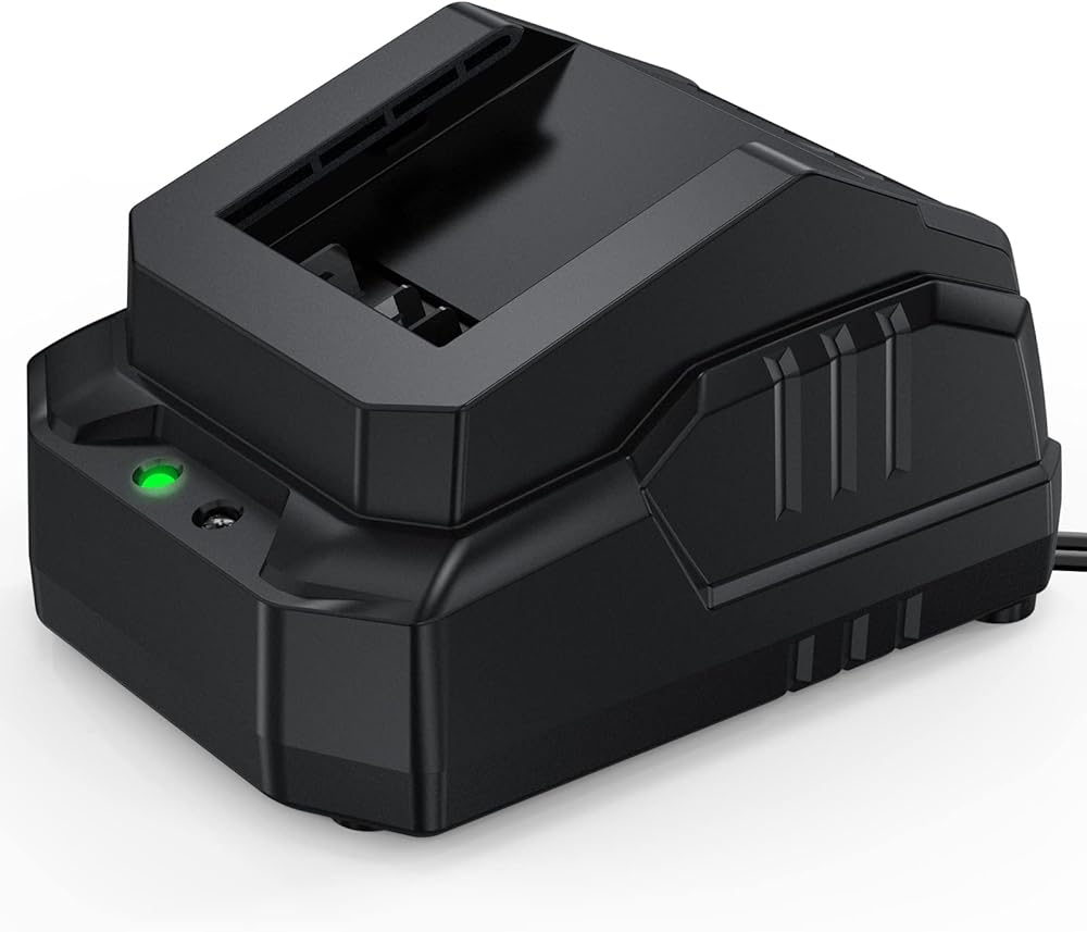 [LED Indicator to Diagnose Battery] Know about the battery condition by observing the status and color of the 20V max lithium ion charger indicator light. Red light means charging; green light means full charge; green light flashing means power on; red light flashing means the battery temperature is too high; red and green light flashing together means battery abnormality. Even the first time using cordless power tools can easily determine the health status of the battery.