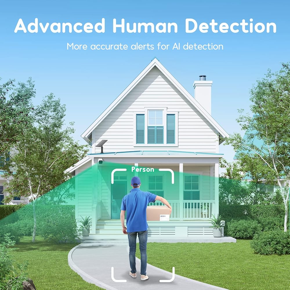 【Ultra-Clear 2K QHD Resolution & Digital Zoom 】Get unparalleled clarity with the outdoor camera ultra-clear 2K QHD resolution. With a 130° diagonal viewing angle and 6x digital zoom, the human figure will be automatically enlarged and tracked if someone appears in the view, so that you won't miss a single detail with solar camera.