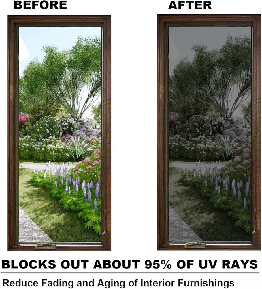【Easy Install Window Tint For Home 】 These non-adhesive window tinting film for home is no glue design that never damages the glass and can be simply stuck by using a soap and water mixture. It is also explosion-proof to hold shattered glass together.