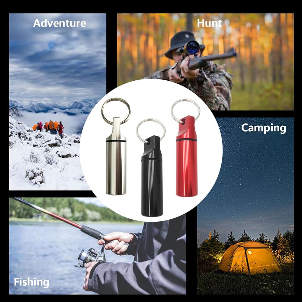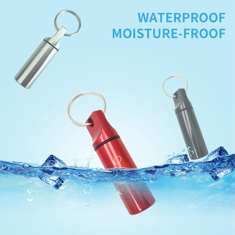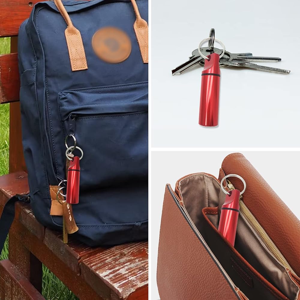 3-Pack Small Portable Pill Box Keychain Aluminium Alloy Waterproof Pill Organizer Case Circular Container Medicine Drug Bottle Holder for Purse Pocket Outdoor Camping Travel(Black&Silver&Red)