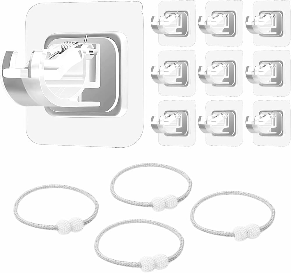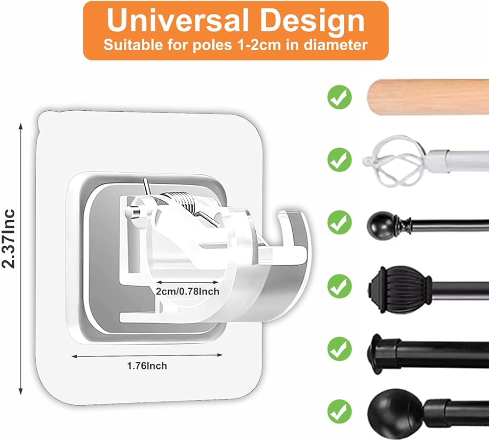 14 PCS Value Pack : You will receive 10 PCS universal plastic self Adhesive curtain rod brackets, which measures approx 2.37 square inches and 4 PCS of Magnetic Tie back holders for Curtains. curtain rod holders no drilling are Suitable for curtain rods or towel rods. In addition, you can also hang Tools in workshop, small accessories such as hats, umbrellas, and towels.