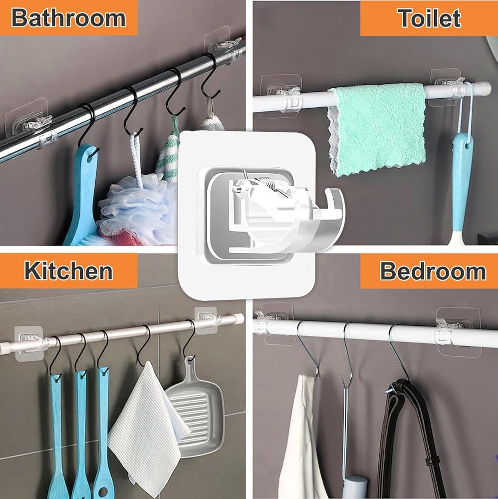 VERSATILE APPLICATION: Stick on Curtain Rod Holder Suitable for bathroom curtain rods, closets, cabinets, hangers, curtains, kitchen, and other indoor environments that require a fixed rod, strong enough for regular usage.