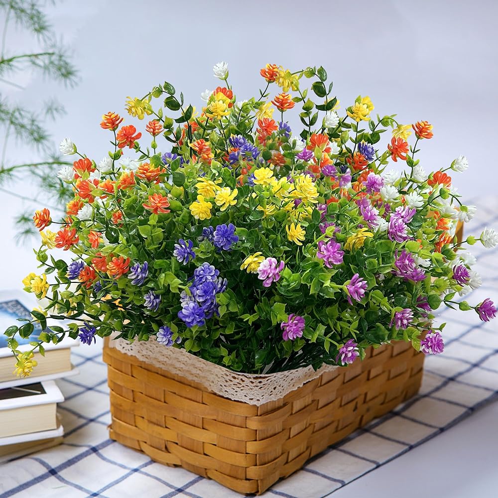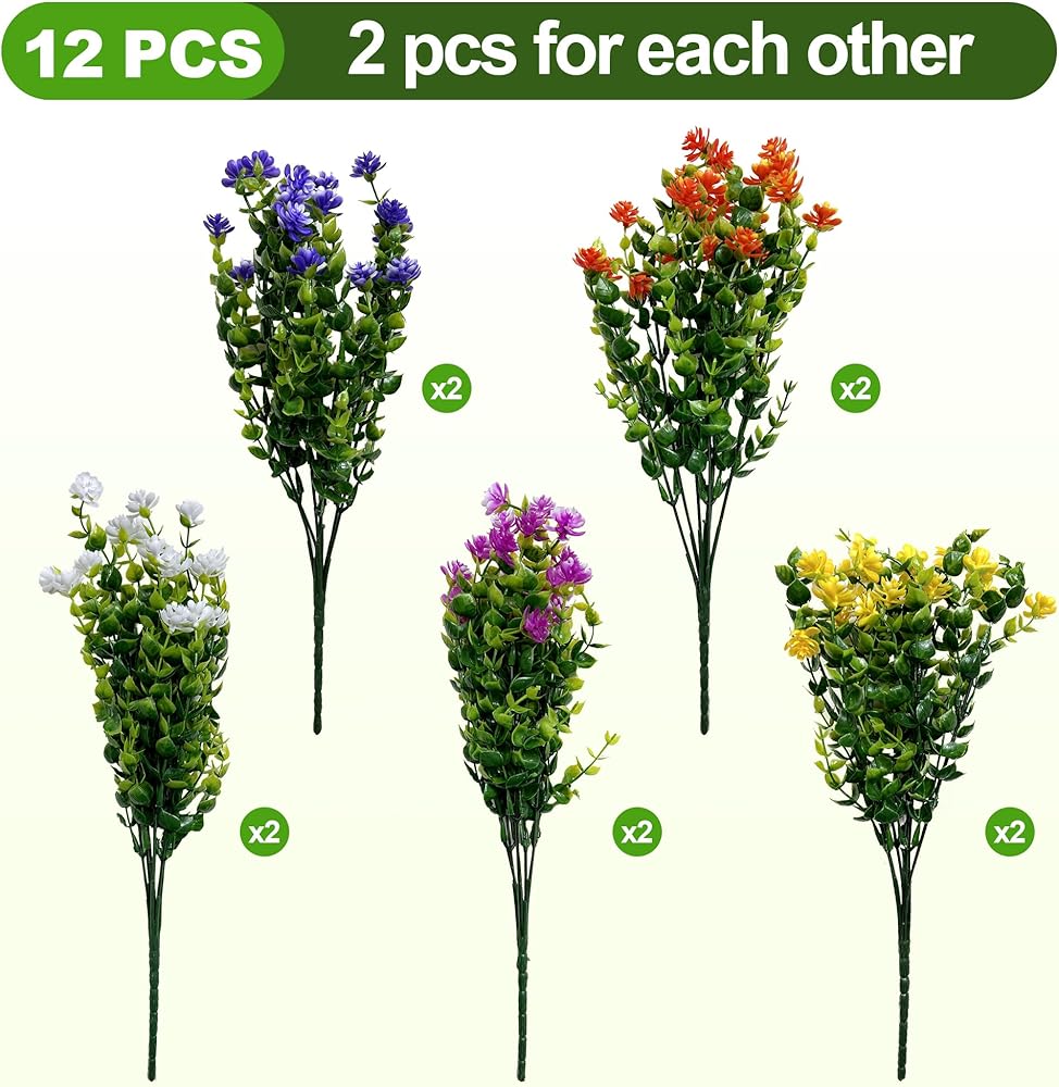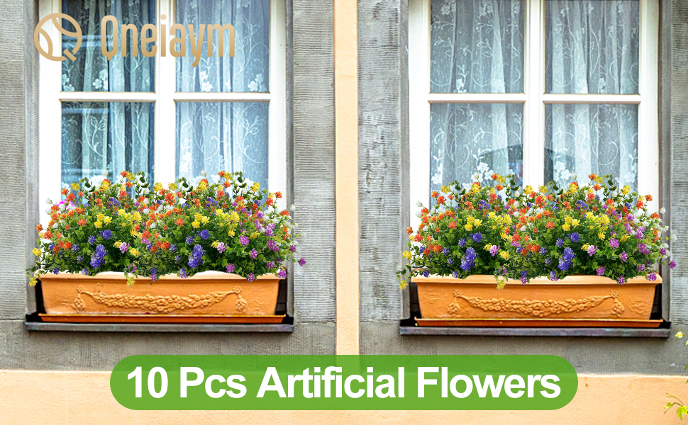 Qneiaym 10 Bundles Fake Flowers,Plastic Artificial Flowers for Outdoors,UV Resistant Faux Flowers Bouquet for Home Garden Porch Window Box Outside Indoor Decoration,5 Colors