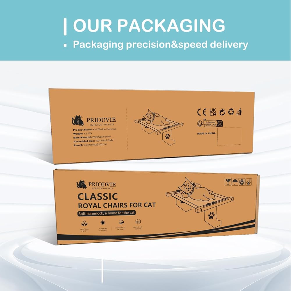 🦅【NO DRILLING & SUCTION CUPS NEEDED FOR INSTALLATION】This cat bed is fixed on the carrier by two metal hook and supported by two wooden supports, without the need to damage the wall and the worry of the suction cups falling off. The metal hooks are widened. The contact surface with the windowsill is larger that protects your window from being damaged by the concentrated force.