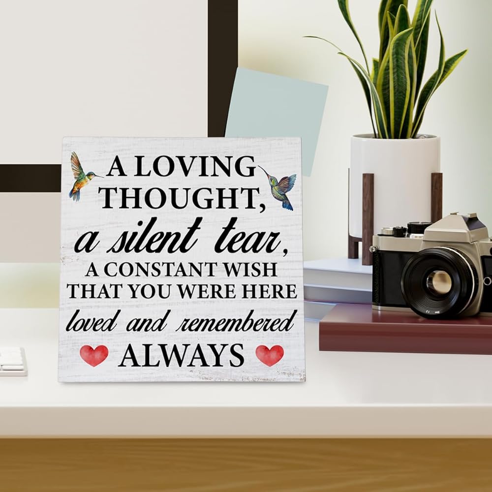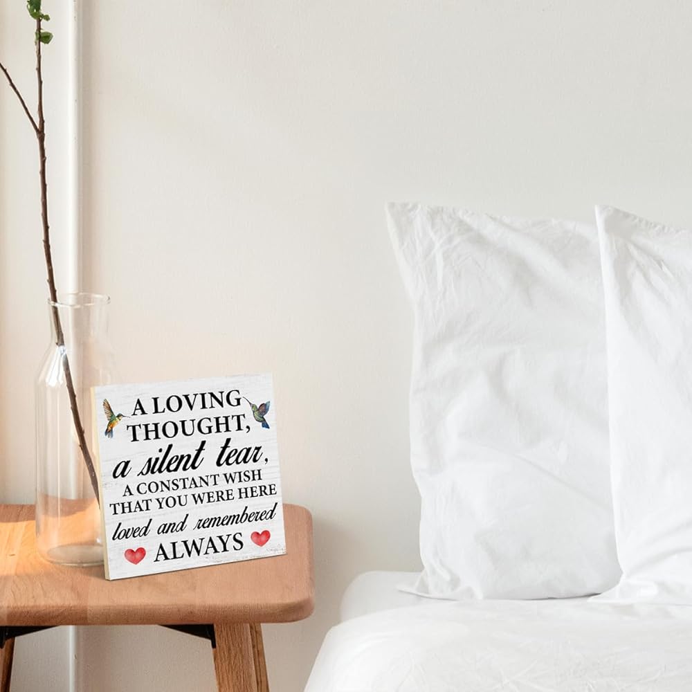 Sympathy Gift, Gifts, Memorial Gifts for Loss of Mom Dad Husband Wife Daughter, in Memory of Loved One Wood Sign Plaque Keepsake Desk Decor for Home Bedroom 6.2 X 6.2 Inches